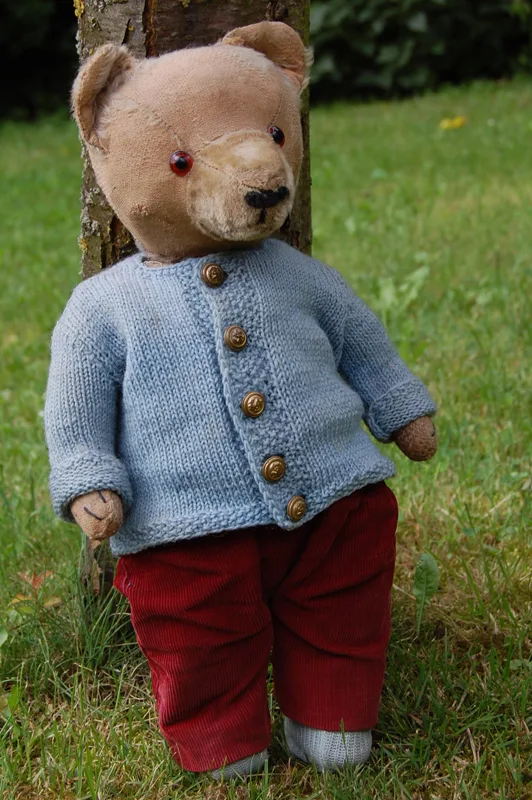 Meine Oma nähte ihm später sogar eine Hose und eine Strickjacke. Der Teddy bekam von mir den Namen "Petzy".