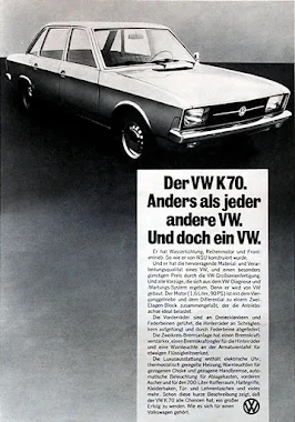 Nachdem meine beiden früheren Kalender-Werke, der 2022er "KUNST & K 70"-Clubkalender und der 2024er "K 70 PHOTOSHOP ILLUSIONEN"-Kalender auf rundum breite Zustimmung stießen, fühlte ich mich nun natürlich einer gewissen kreativen Güte verpflichtet. Meine ersten Gedanken kreisten also um die Frage: "Um welches Thema soll es sich bei dem neuen Kalender handeln?" Seit einiger Zeit beschäftigte ich mich in der Redaktionsarbeit für die "K 70-POST" unter anderem mit der Gestaltung von Werbung für den VW K 70 nach der typischen Art, so, wie sie vor fünfzig Jahren in Zeitungen zu finden war - zumindest so, wie ich das in Erinnerung habe. In meine für den neuen Kalender gestalteten Werbeanzeigen sollen jedoch die Erfahrungen mit diesem Modell, die allgemeine Kraftfahrzeugentwicklung der vergangenen Jahrzehnte, menschliche Vorurteile und der Hang zu diesem Oldtimer einfließen. So sah die Werbung damals aus - quasi zeitgenössische Werbung: K 70 - Werbung aus den 70ern |